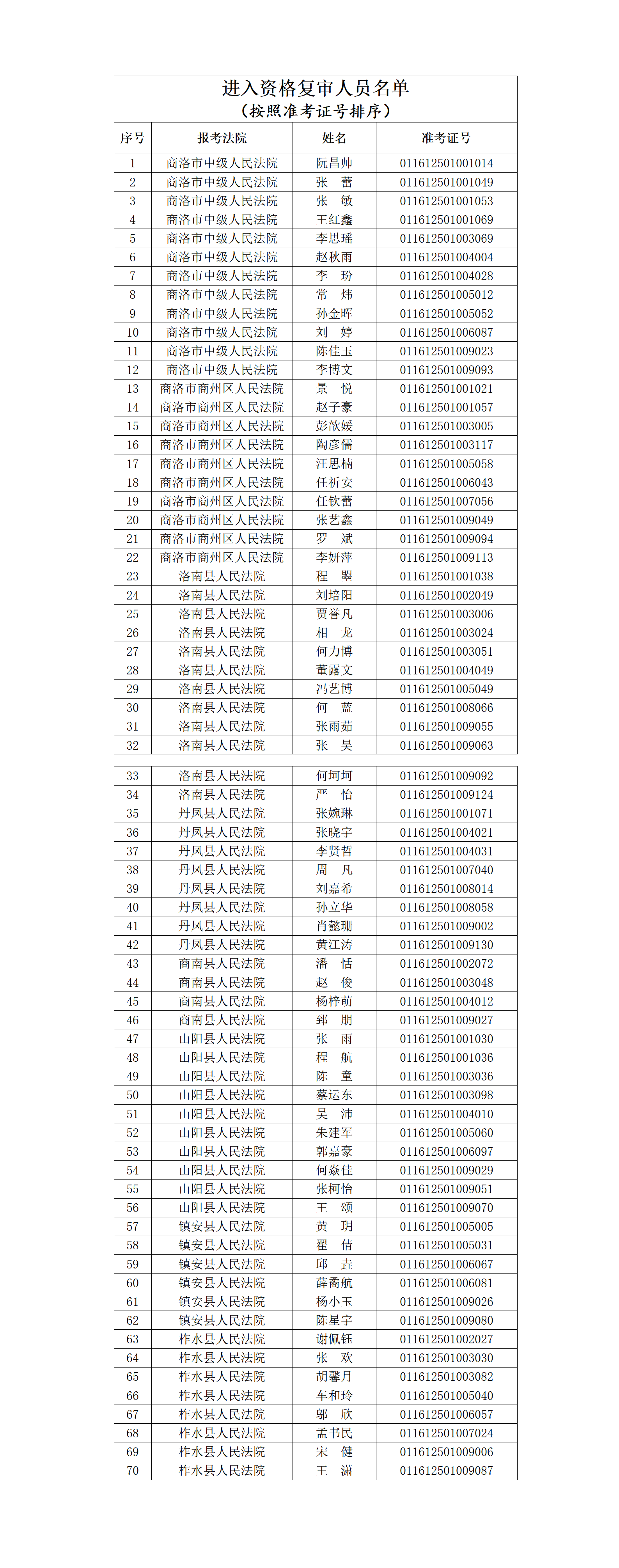 參加資格復(fù)審人員以所報(bào)考法院的考生綜合成績排名及招聘計(jì)劃2倍的比例,由高到低確定(進(jìn)入資格復(fù)審人員名單詳見附件)。